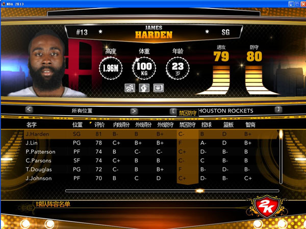 - [地图+MOD]NBA2K13新老火箭PK名单补丁
