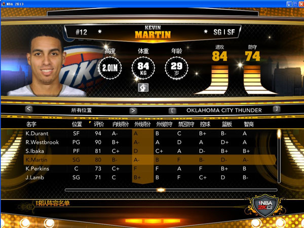 《NBA2K13》10月30号名单