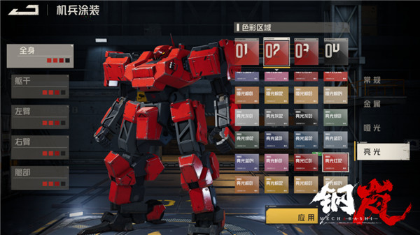 施密特色彩的最新第三版色彩标准分为四大系列:常规、金属、哑光、亮光。不同的机兵制造商和武装组织对这些系列有不同的偏好,施密特色彩提供全方位服务。