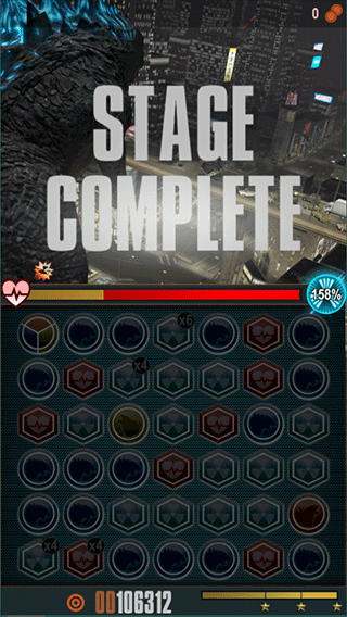 将哥斯拉的破坏行动与三消相结合,通过消除图案为哥斯拉带来破坏能量,操作简单又有趣。